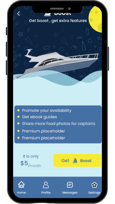 Amplify your culinary presence with a small investment that yields significant returns. With Chef4Yachts' profile boosters, you can enhance your visibility among captains and yacht owners for just 5 USD. This booster propels your profile to the forefront, capturing attention and creating a lasting impression. Whether you're an established chef or seeking recognition, the profile booster is your ticket to standing out in the competitive world of yacht dining. Make a splash, secure more opportunities, and shine as the go-to choice for exceptional culinary experiences.