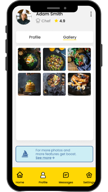 3. Firebase Realtime Database for Boosters: By utilizing Firebase's Realtime Database, we created a profile booster system. Chefs could purchase boosters for 5 USD, which dynamically elevated their profile visibility. This solution provided an equitable and appealing mechanism for enhancing visibility.